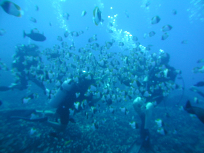 | ●見れる魚 カスミアジ、ミナミハタタテダイ、カスミチョウチョウウオ、シテンチョウチョウウオ、アカヒメジ、ノコギリダイ、ツムブリ、マダラタルミ、イケカツオ、バラフエダイ、クマザサハナムロ、クロメガネスズメダイ |